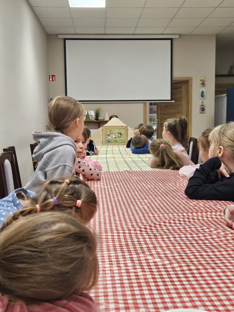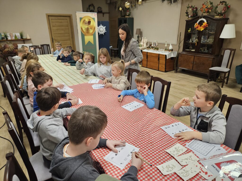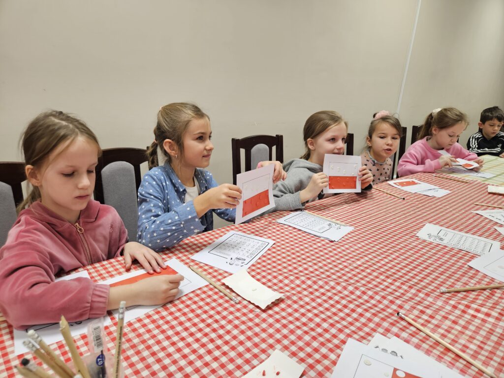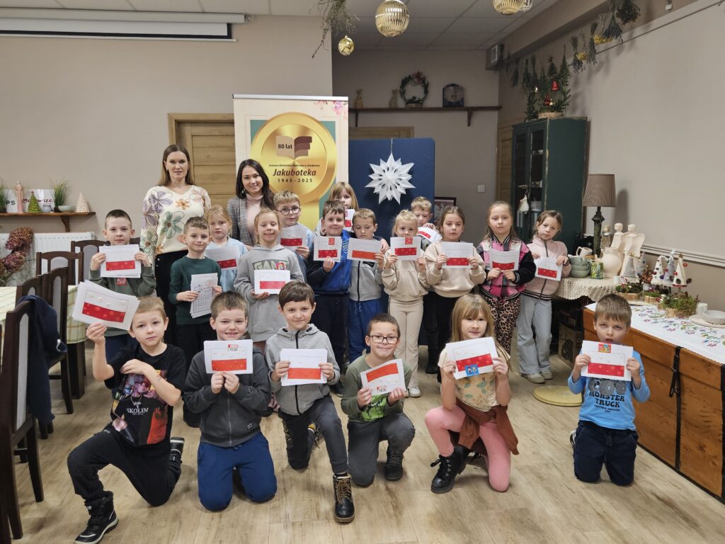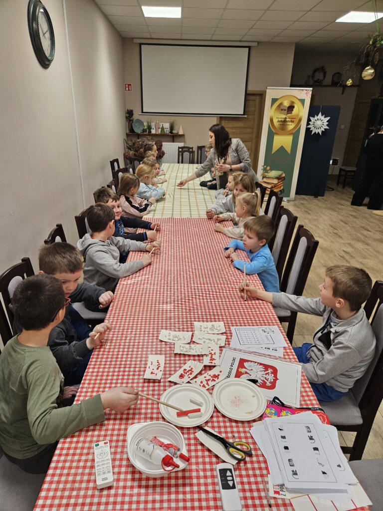 Wczoraj odbyły się dwa spotkania o tematyce patriotycznej. Pierwszoklasiści poznali symbole narodowe i rozmawiały o tym, czym jest dla nas ojczyzna. Jednym z najciekawszych punktów programu był teatrzyk kamishibai z legendą: O Lechu, Czechu i Rusie i powstaniu Polski. Dzieci z zaciekawieniem słuchały historii o losach trzech braci i powstaniu Polski. Wykonały też piękne flagi, które dumnie prezentowały.