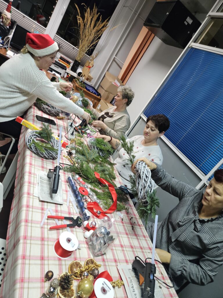 Wczoraj odbyły się warsztaty, podczas których panie tworzyły świąteczne wianki. Był to czas kreatywnej pracy oraz rozmów w miłej atmosferze.