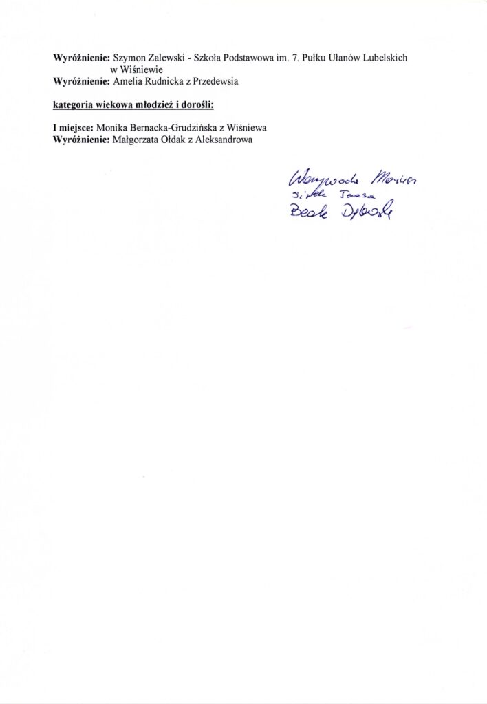 Komisja konkursowa w składzie: Mariusz Warzywoda, Teresa Siwek, Beata Dąbrowska po niełatwej naradzie wytypowała laureatów konkursu.